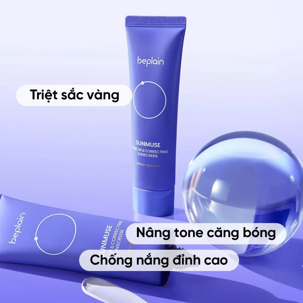 Beplain là thương hiệu mỹ phẩm Hàn Quốc nổi tiếng với các sản phẩm chiết xuất tự nhiên, lành tính, hướng đến làn da nhạy cảm và dễ kích ứng. Trong đó, Beplain Tone Up Correcting Sunscreen SPF50+ PA++++ (màu tím đậm) được xem là dòng kem chống nắng “2 trong 1”: vừa chống nắng vừa thay thế kem lót trang điểm.